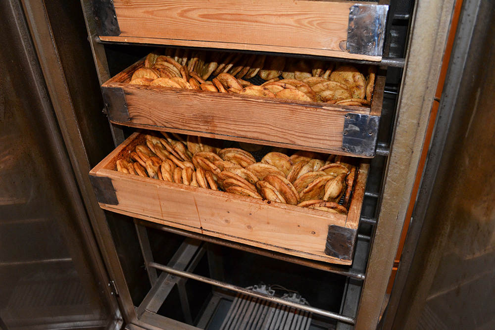 特製ダレが塗られたおせんべいを低温でじっくりと乾燥させることで、香ばしい香りとパリッとした食感が提供できます。